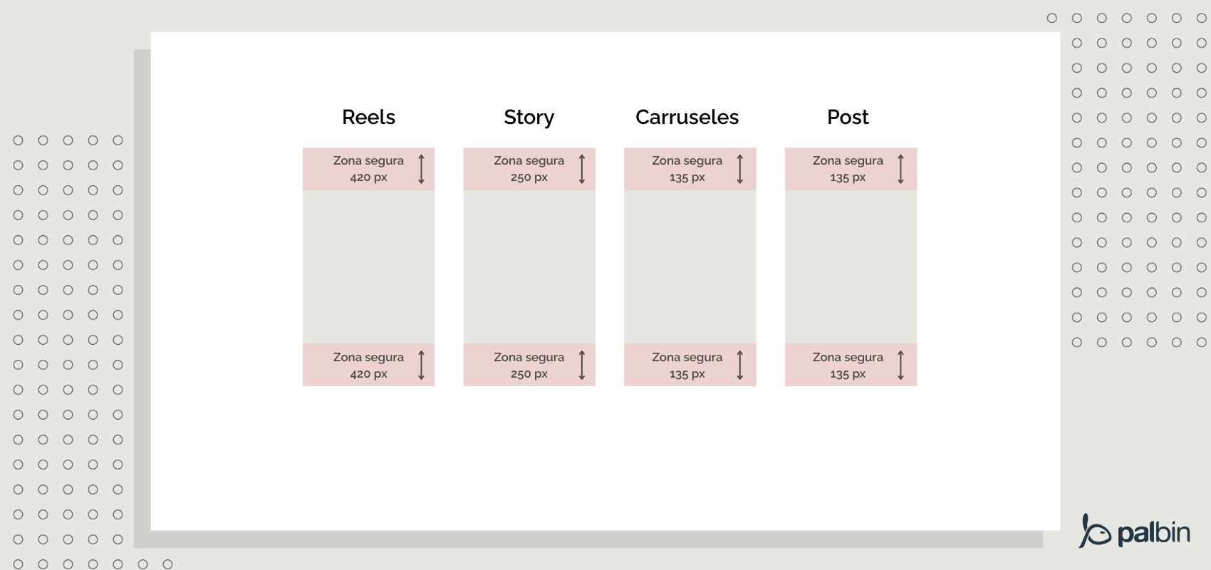 En las Historias y Reels, evita poner logos o texto importante en el 14% superior (donde va tu nombre) y el 20% inferior (donde va el botón de llamada a la acción). Respeta la zona de seguridad, si no lo haces, el usuario no podrá leer tu mensaje.